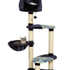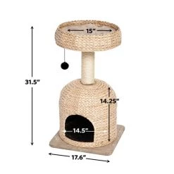 - Two-tiered condo that provides your furry friend a comfortable place to relax and lounge.