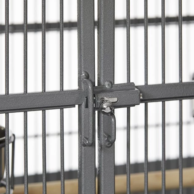 The MidWest Avian Adventures Nina Playtop Bird Cage features a removable play area top that offers your feathered friend extra space to spread his wings for his health and happiness. The play top includes two water and food cups, as well as removable toy hooks and ladders, and you can position it in other areas of your home during playtime. The roomy cage is two inches wider than most small bird cages and comes with three food cups—with the ability to easily access them from outside the cage. You can store your supplies on the bottom shelf and, when it’s time to clean, enjoy the convenience of seed skirts, slide-out base pans and removable floor grates. Assembly is easy and requires no tools, and locking casters allow you to easily move the cage around as needed.