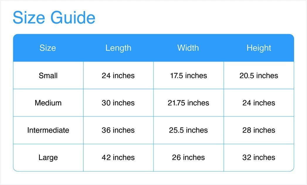 | Small | 24 inches | 17.5 inches | 20.5 inches |