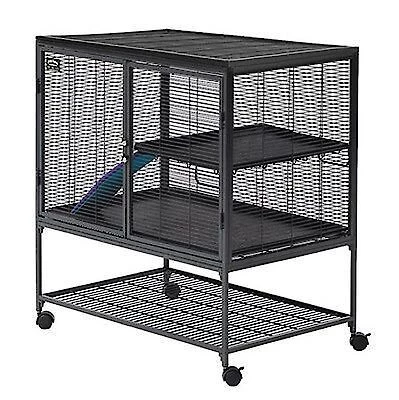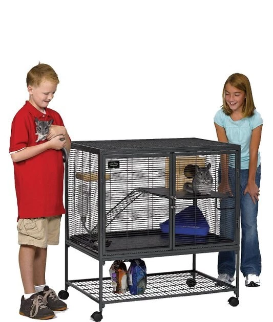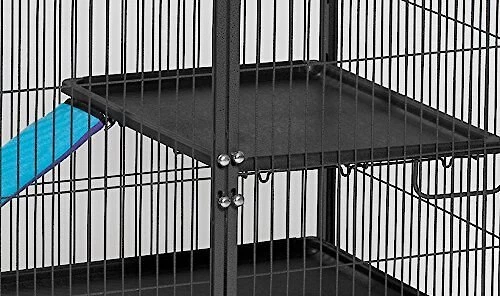 - Spacious living area is ideally suited for rats, chinchillas, Guinea pigs, ferrets, sugar gliders and more; durable leak-proof pans help prevent food, water, pet waste or other debris from reaching the floor.
