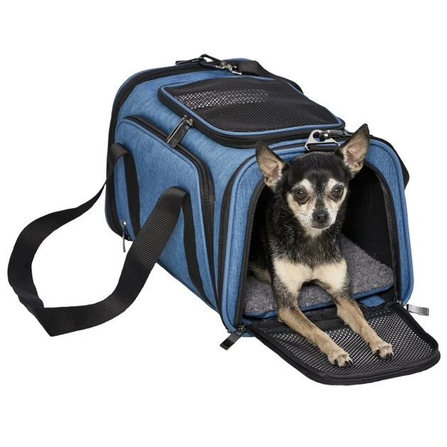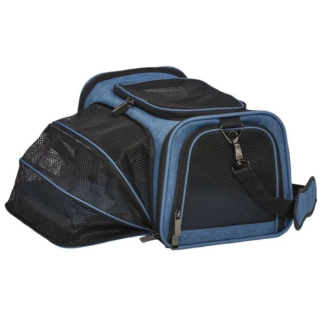 The most important qualities in a pet carrier are durability and ease of portability. The MidWest Duffy Dog & Cat Carrier has all of those qualities. The mesh sides provide ventilation and keep your pet safe and secure, and an expandable side gives your pet more space to move around. No tools are required for setup, and the carrier folds flat for easy storage when not in use. The crate includes a carrying strap and an interior leash for ease and safety.