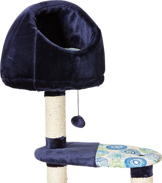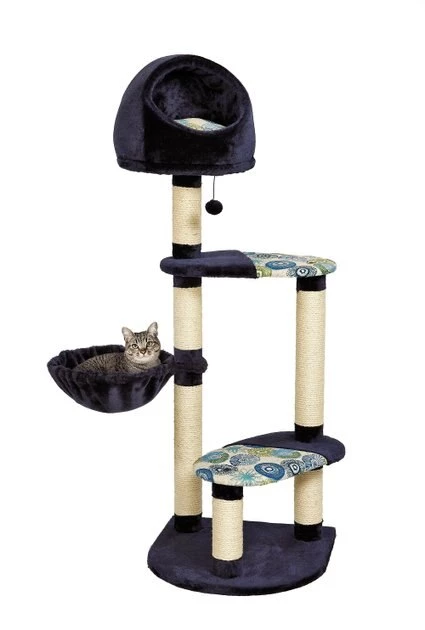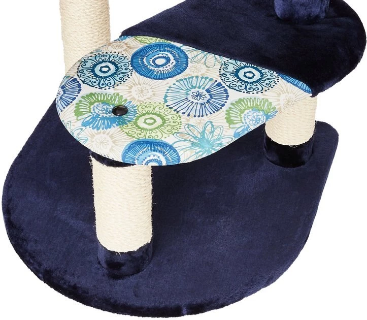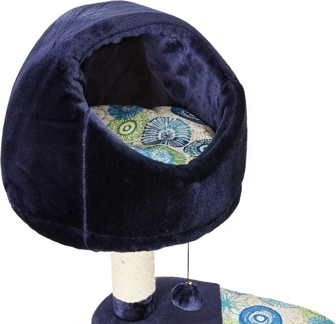 Give your kitty a spot of his own with the MidWest Feline Nuvo Resort cat tree. Designed specifically for your feline friend, this multi-tier cat tree offers a variety of play and lounging options. The perfect addition to any cat home, the sturdy tree features an attractive deep blue, ultra-soft faux fur and coordinating designer print fabric to complement any home decor. It comes with a strong sisal-wrapped support to provide a tough, resilient scratching post for your cat’s scratching and grooming needs. Plus, the plush, dark fabric is easy to clean from your pal’s fur and accidents. Your cat is sure to love this perfect spot with elevated retreats, areas to groom and a space for him play all he wants.
