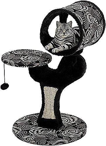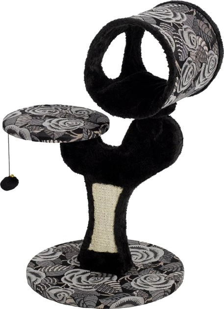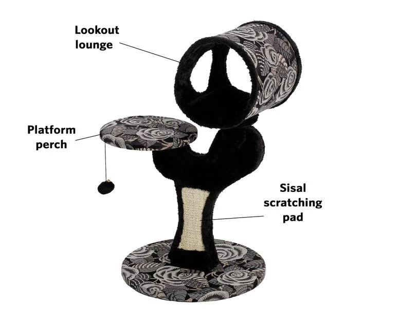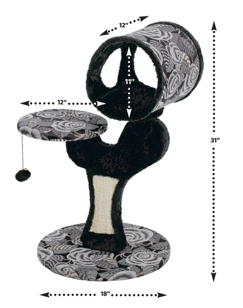 Give your kitty a spot of his own with the MidWest Feline Nuvo Salvador cat tree. Designed specifically for your feline friend, this multi-tier cat tree offers a variety of play and lounging options. The perfect addition to any cat home, the sturdy tree features an attractive black, ultra-soft faux fur and coordinating designer print fabric to complement any home decor. It comes with a strong sisal-wrapped support to provide a tough, resilient scratching post for your cat’s scratching and grooming needs. Plus, the plush, dark fabric is easy to clean from your pal’s fur and accidents. Your cat is sure to love this perfect spot with elevated retreats, areas to groom and a space for him play all he wants.