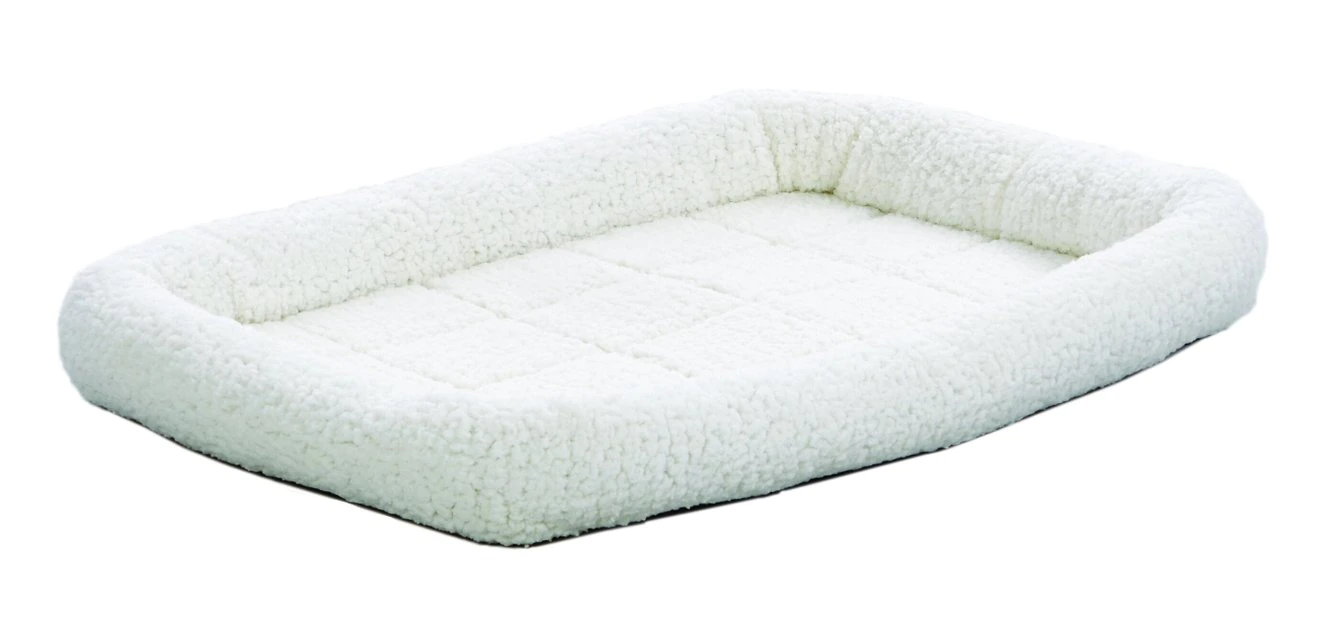 Trips in the pet carrier can be scary for your fur baby, so make the experience more comfortable with MidWest Homes for Pets Dog Carrier Bed. Paw-fect for cushioning the hard floor of dog carriers that carry medium sized dogs—this plush cushion is machine washable and dryer friendly so you can clean it with ease—ensuring it will be a long lasting staple in your pal’s sleeping spot list. This comfy cushion can be used purely in the carrier or as an everyday cushion that can be moved to the carrier as needed. Having a familiar cushion can make your fur baby feel safe throughout all your forays together, including those stressful excursions to the vet, or those eagerly awaited car rides. Plus, this cushion is great for everyday use as a cozy cushion or bed.