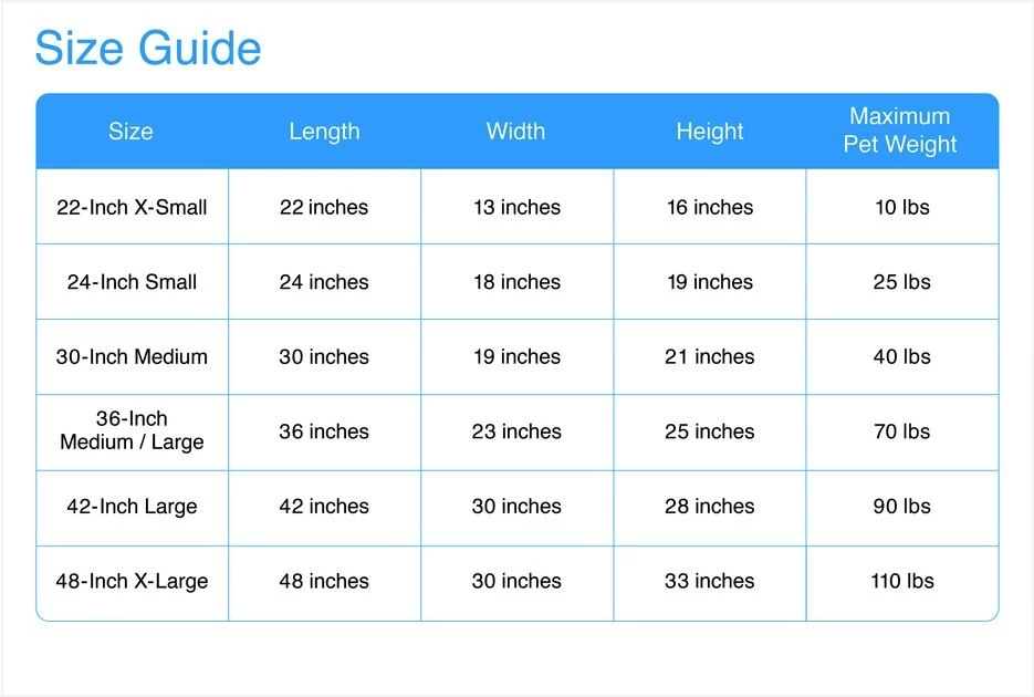 | 48-Inch X-Large | 48 inches | 30 inches | 33 inches | 110 lbs |