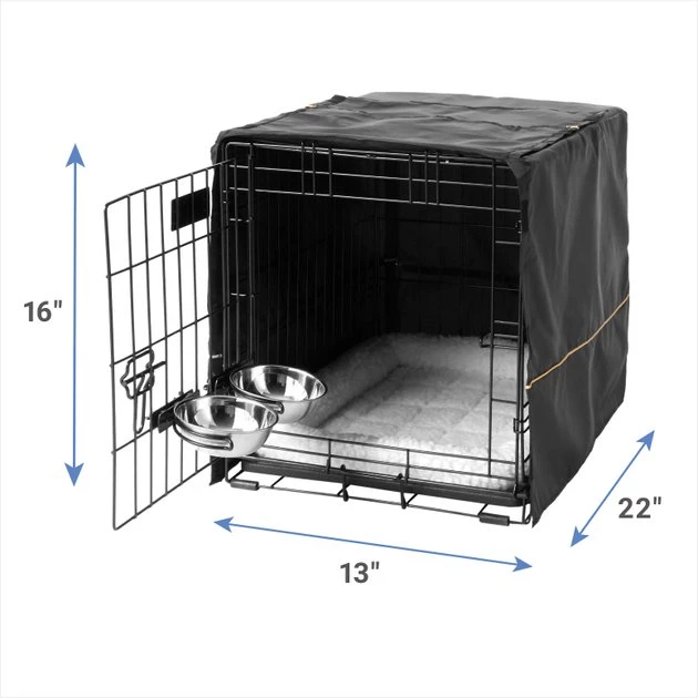 - Includes a Double Door iCrate, one crate-sized bed, one privacy crate cover and 2 appropriately sized pet bowls.
