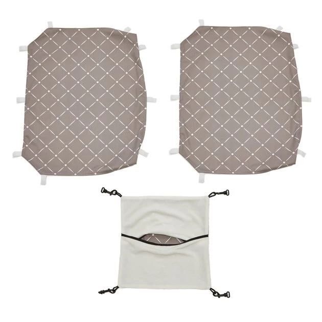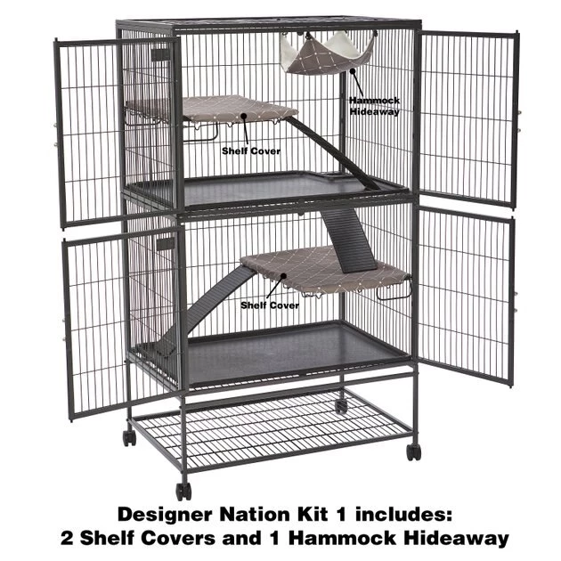 - Includes a combination of either shelf covers, ramp covers, pan covers, cozy cubes, hide and seek tunnels or hammocks.