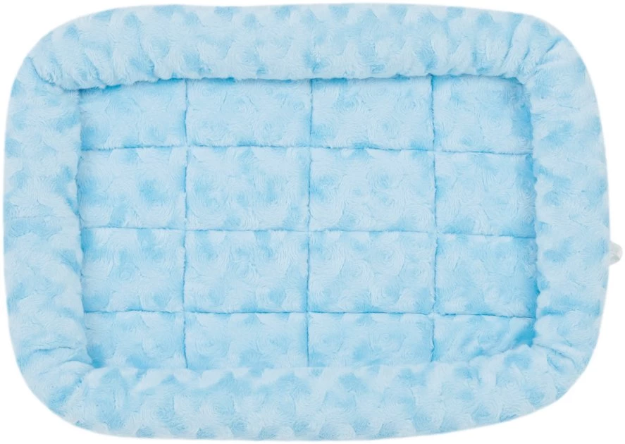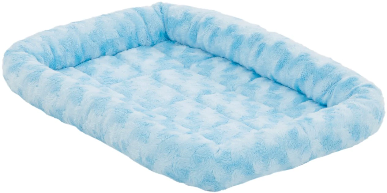 Spoil your best friend with the plush MidWest Quiet Time Fashion Plush Bolster Pet Bed & Crate Mat. Featuring a soft, cozy and welcoming place to rest and relax, this pet bed is ideal for most standard folding metal dog crates, dog carriers, cat carriers and dog houses. It’s also great as a stand-alone bed anywhere in the house or when traveling with your pet. The comfortable blue bed is made with a synthetic polyester fur and overstuffed bolsters around the edges perfect for a nice headrest. The rectangular pet bed is machine washable and dryer friendly, so it’s easy to clean.