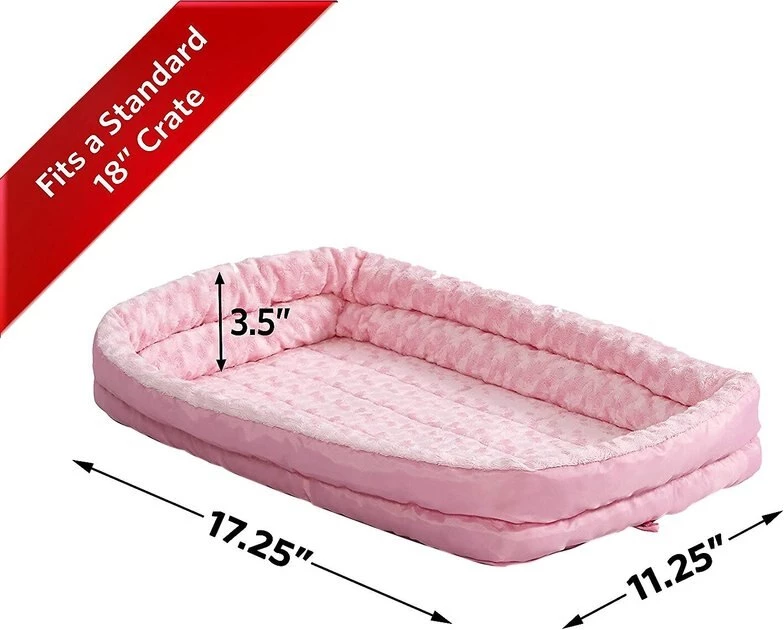 Give your furry friend a comfortable place to rest with the MidWest Quiet Time Fashion Plush Double Bolster Pet Bed & Crate Mat. Made of comfortable cotton and polyester, this bed is perfect inside a crate or out. It has four elastic straps to secure the bed to the crate’s floor pan and the unique design prevents it from bunching up. The double bolster also unrolls to provide a comfortable bumper around the perimeter of the crate. Easy to clean, the Quiet Time Fashion Plush Double Bolster Pet Bed & Crate Mat from MidWest will keep your paw-tner cozy.