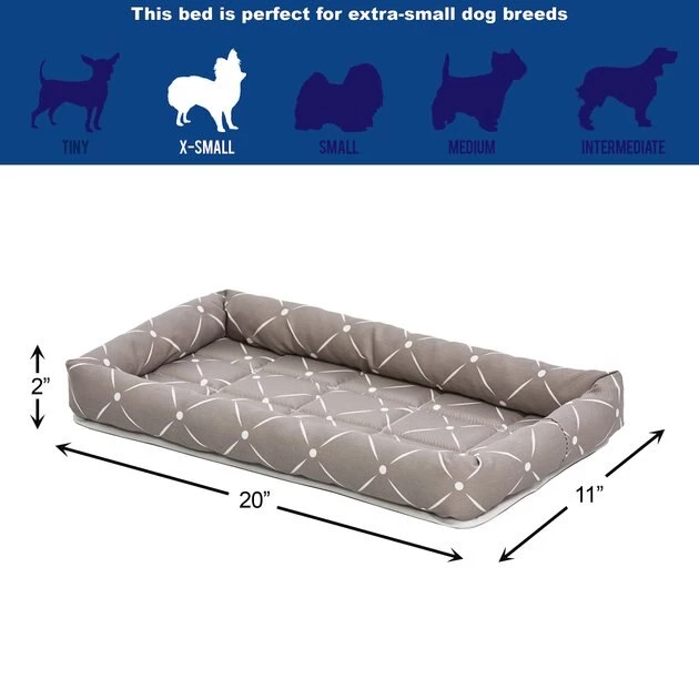 Comfortable yet stylish, the MidWest QuietTime Couture Ashton Bolster Dog Bed offers a secure and cozy feel. The bolster design can make your best buddy’s crate or carrier more comfortable, since it fits most standard crates and carrier as well as the MidWest folding metal crate line. The bolsters are soft and comfy—perfect for supporting your dog’s head while he sleeps. Three trendy color patterns add a fun, stylish touch. With increased comfort, your dog may be happier to go into his crate more often and may enjoy better quality rest while in the space. The bed is machine washable and dryer friendly for easy, efficient cleaning.