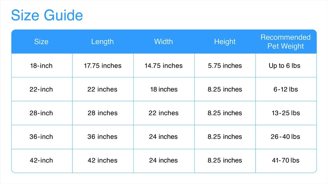 | Size | Length | Width | Height | Recommended Pet Weight |