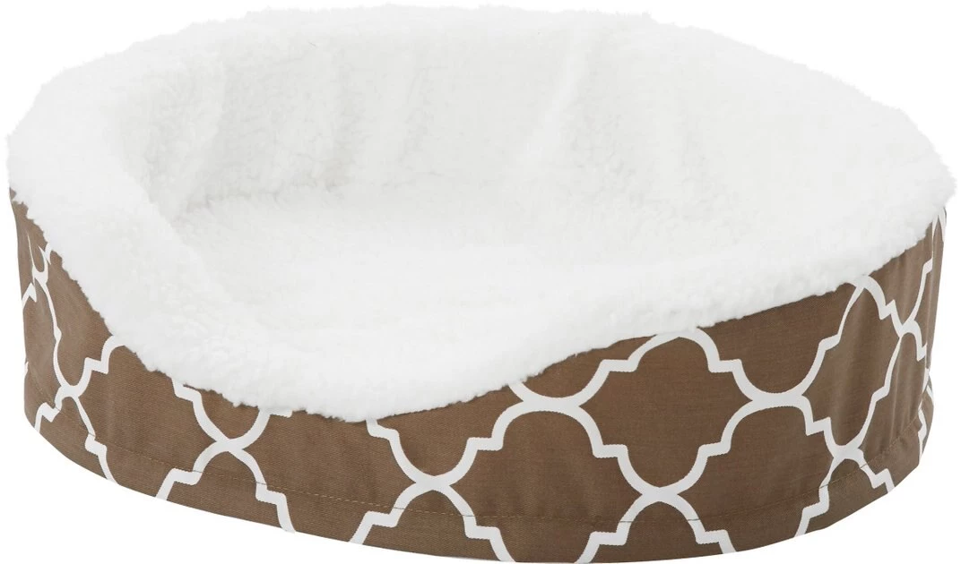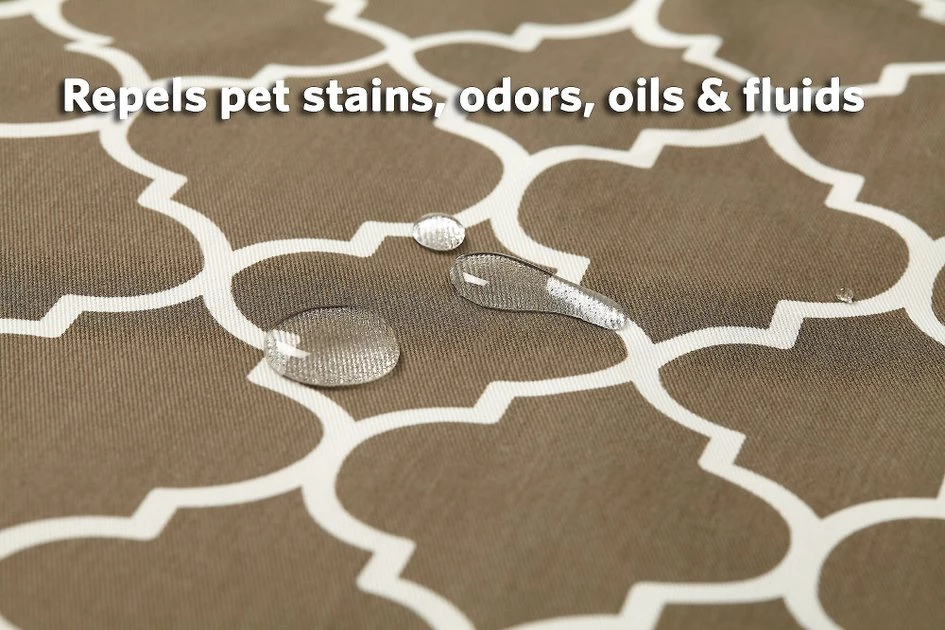 MidWest QuietTime Defender brings comfort, style and function together in their Brown Teflon Geometric Orthopedic Nesting Pet Bed. With an egg-crate base, super-soft fleece lining and thick foam bolster, this bed provides orthopedic support by cushioning weary joints and muscles. Aging and injured pets or those recovering from surgery can enjoy a safe resting spot that features a lowered side for easier access. This stylish bed is protected by a Teflon coating that repels water, odors and stain-causing liquids to keep it looking clean and new.