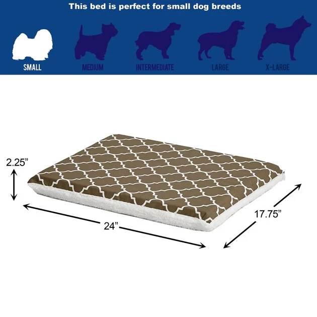 Add comfort to your canine companion’s crate with the MidWest QuietTime Geo Print & Fleece Reversible Dog Crate Mat. A foam pad cushions your dog’s joints and muscles for paws-down comfort, while the mat’s cover is resistant to fluids, oil and dirt to keep it looking fresh and clean longer. The removable cover is reversible, with one side featuring a super-soft white fleece and the other decorated with a geometric pattern. A hidden zipper makes it easy to remove the cover when it’s time for cleaning. While the mat is designed to fit MidWest metal dog crates, it’s also suitable for use as a stand-alone pet bed.