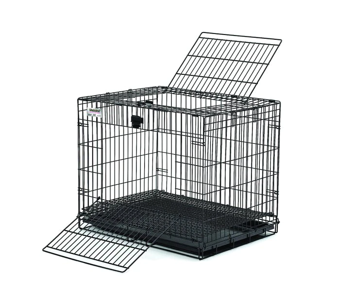 - Two doors, one on the top and the other on the side are operated with a secure slide-latch which allows for one handed door operation, making entering and exiting simple