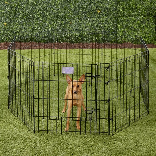Exercise Pens are a good playing ground for your pets whether indoors or outdoors. This versatile pen can be set up in a circle or a square, depending on the space. And to make sure your pet stays secure in his designated area, it has a secure double latch door access. When it’s time for your pal to come out, simply open the latch and let him through the step-through door! Best of all, there are no tools needed, which means it’s a cinch to set up and it folds flat for easy storage and portability. This pen is paw-sitively perfect for single-pet and multiple-pet households.