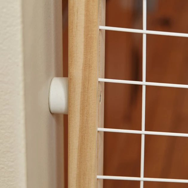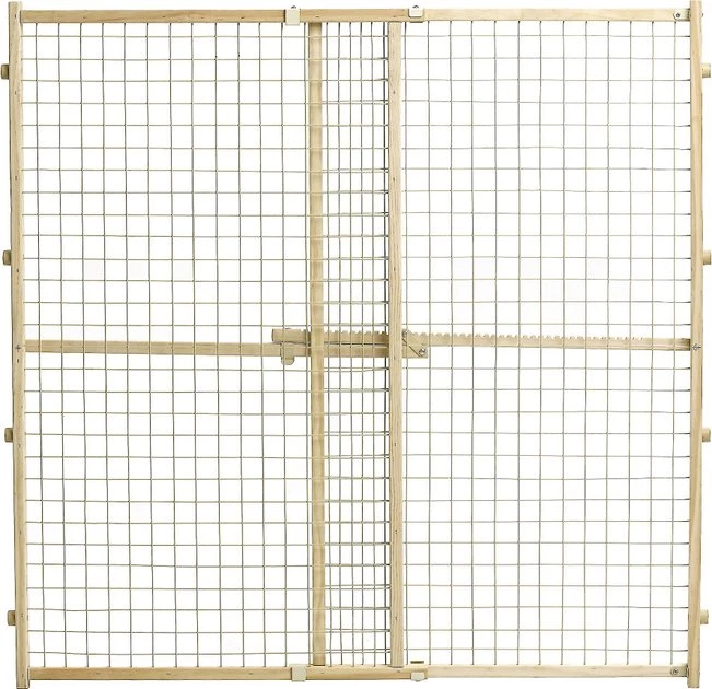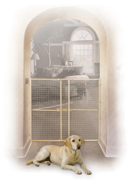 - This wood and wire mesh gate is designed to keep your pet in his very own designated area.
