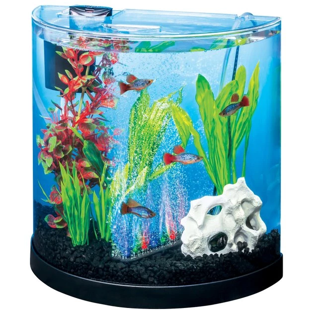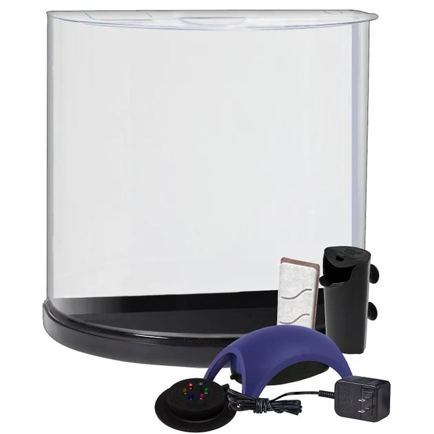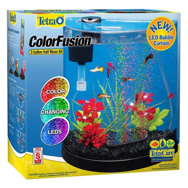 Tetra ColorFusion Half Moon Aquarium Kit brings a splash of beauty to your home, office or dorm environment. The kit includes a 180-degree seamless aquarium and an auto color-changing submersible LED lighting unit that combines with an air curtain to form a uniquely colorful bubbling effect. It also includes a cartridge-based, Tetra Whisper filtration unit for easy, reliable maintenance. Make it your own with gravel, plants, water and fish.