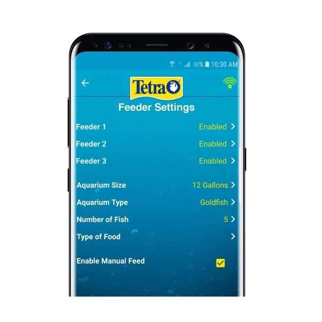 - Compatible with the Tetra My Aquarium app, which keeps track of when the feeder dispenses food.