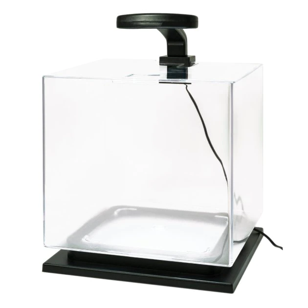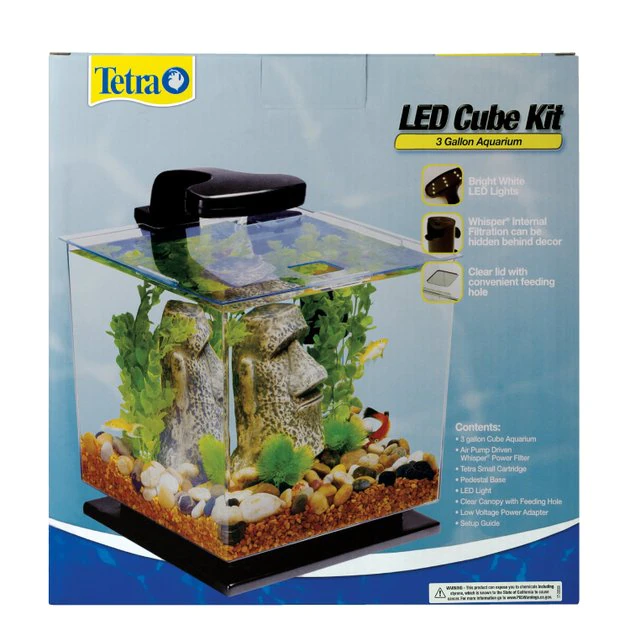 The Tetra LED Cube Shaped Fish Aquarium provides everything you need to set up a modern new home for your fish. The compact, 10-inch square tank fits almost anywhere and is made of virtually unbreakable plastic. Low-voltage LED lighting casts a beautiful light, while the air-pump driven Tetra Whisper filter keeps the water clean and clear for your aqua buddies. With a stylish pedestal base and feeding hole at the top for easy access, this tank works best for one betta or up to two community tropical fish.