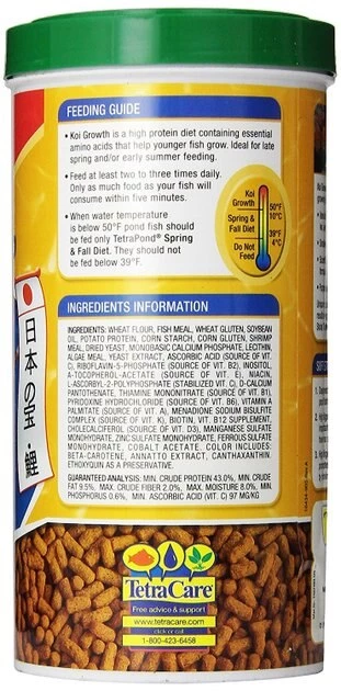 Feed your young pond fish a diet formulated for growth with Tetra Pond Koi Growth High Protein Koi & Goldfish Food. Protein and vitamin C are essential to healthy growth and development and longevity. Tetra Pond Koi Growth High Protein Koi & Goldfish Food is formulated to promote growth and fortified with vitamin C, a valuable antioxidant that fights disease. This pelleted formula softens quickly in the water for easier digestion and less waste.