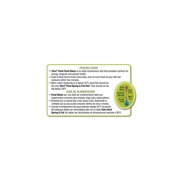 Feed at least 2 – 3 times daily only as much food as your fish will consume within 5 minutes. When water temperature is below 50 degrees pond fish should only be fed TetraPond Spring and Fall diet. Fish should not be fed when the temperature is below 39 degrees.
