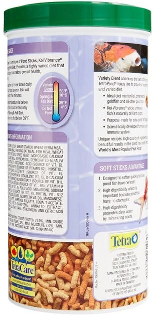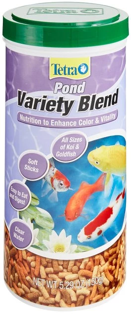 Feed your pond fish a diet that enhances color and vitality with Tetra Pond Variety Blend Color & Vitality Enhancing Koi & Goldfish Fish Food. Fish love variety and need a diet high in protein to stay healthy and thriving. Tetra Pond Variety Blend Color & Vitality Enhancing Koi & Goldfish Fish Food provides that variety with a blend of three foods: TetraPond Pond Food Sticks for daily nutrition, TetraPond Koi Vibrance for coloration and TetraPond Wheat Germ Sticks for increased vitality, especially during colder months. It is also fortified with vitamins and produces less waste for cleaner water.