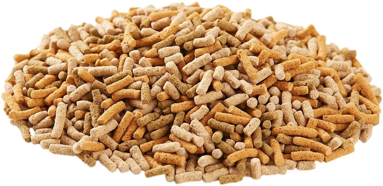 - Vitamin-enriched, low-waste koi food formulation