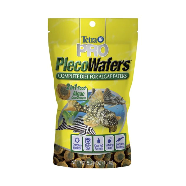 Give your plecostomus and other bottom-feeding fish the nutritionally balanced diet they deserve with Tetra PRO PlecoWafers fish food. Tetra’s patented extrusion technology combines necessary nutrients and concentrated algae into one sinking wafer for easy, high-quality feeding. Each crispy wafer is naturally high in fiber and formulated so it doesn’t cloud your tank water. Explore veggie variety while providing your fish with the optimal health blend he needs for a healthy immune system. Meanwhile, biotin and omega-3 fatty acids help maintain that healthy metabolism and energy. So your fish can just keep swimming—and live the good life!