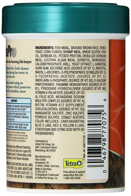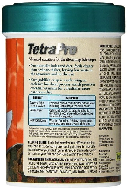 Give your finned friend a delicious and nutritious meal with Tetra TetraPro Goldfish Crisps Fish Food. These flakes contain high-protein krill for muscle growth and an optimized protein-to-fat ratio to help your goldfish metabolize food more efficiently. It is also made with a low-heat process and enhanced with biotin to support your fish’s immune system. Tetra TetraPro Goldfish Crisps Fish Food leaves less waste behind for more usable food and clearer water.