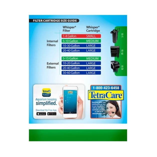 - Color-coded and compatible with Tetra Whisper Water Filters (sold separately).