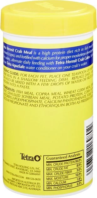 Feed your hermit crab a diet rich in protein with Tetrafauna Hermit Crab Meal Land Crab Food. Hermit crabs need protein and other nutrients for exoskeleton development. Tetrafauna Hermit Crab Meal Land Crab Food is scientifically formulated for optimal growth. It is rich in fish meal and coconut and comes in an easy-to-feed powder form.
