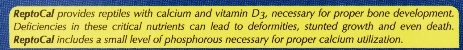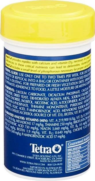 Ensure your reptile gets the calcium he needs with Tetrafauna ReptoCal Calcium Powder Reptile Supplement. Reptiles need calcium for bone and shell growth. Without it, they can suffer bone deformities, stunted growth or even death. Tetrafauna ReptoCal Calcium Powder Reptile Supplement contains this essential nutrient as well as vitamins A, B, D and E and phosphorous for proper calcium absorption. Its fine powder-like texture makes it easy to dust or coat your reptile’s live or moist food.
