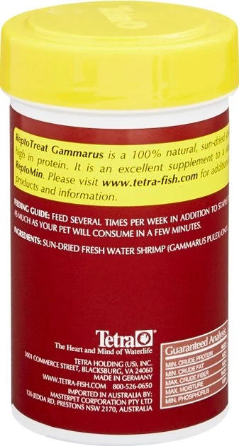 Treat your turtle or frog to a snack of delicious shrimp with Tetrafauna ReptoTreat Gammarus Turtle, Newt & Frog Treats. These pets love variety and really love shrimp. Tetrafauna ReptoTreat Gammarus Turtle, Newt & Frog Treats is made from 100 percent natural, sun-dried freshwater gammarus shrimp. They are high in protein and a great way to entice your pet to swim to the surface for a little one-on-one interaction with you.