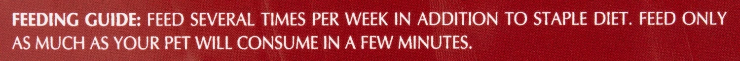 Feed several times per week in addition to staple diet. Feed only as much as your pet will consume within several minutes.