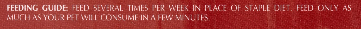 Feed several times per week in place of staple diet. Feed only as much as your pet will consume within several minutes.