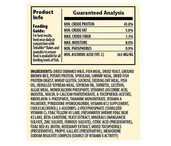 For best results, feed once daily in conjunction with TetraMin Flakes and granules